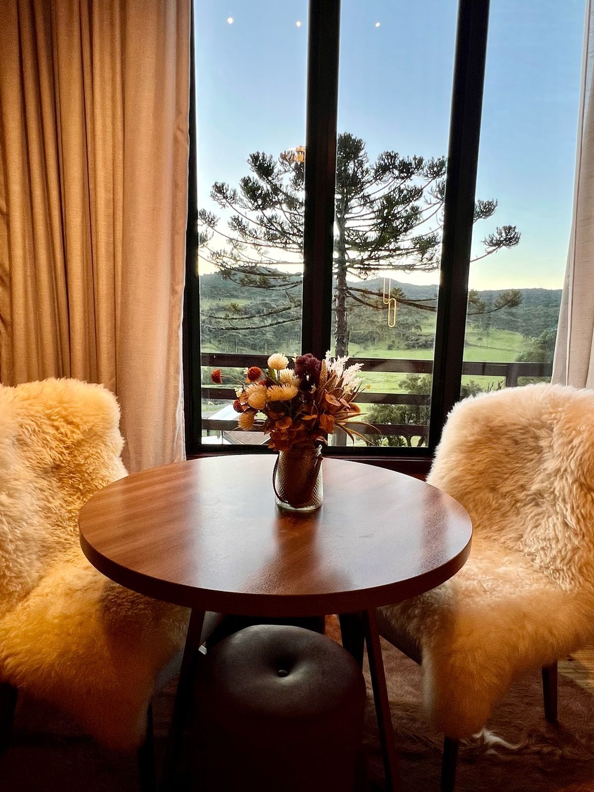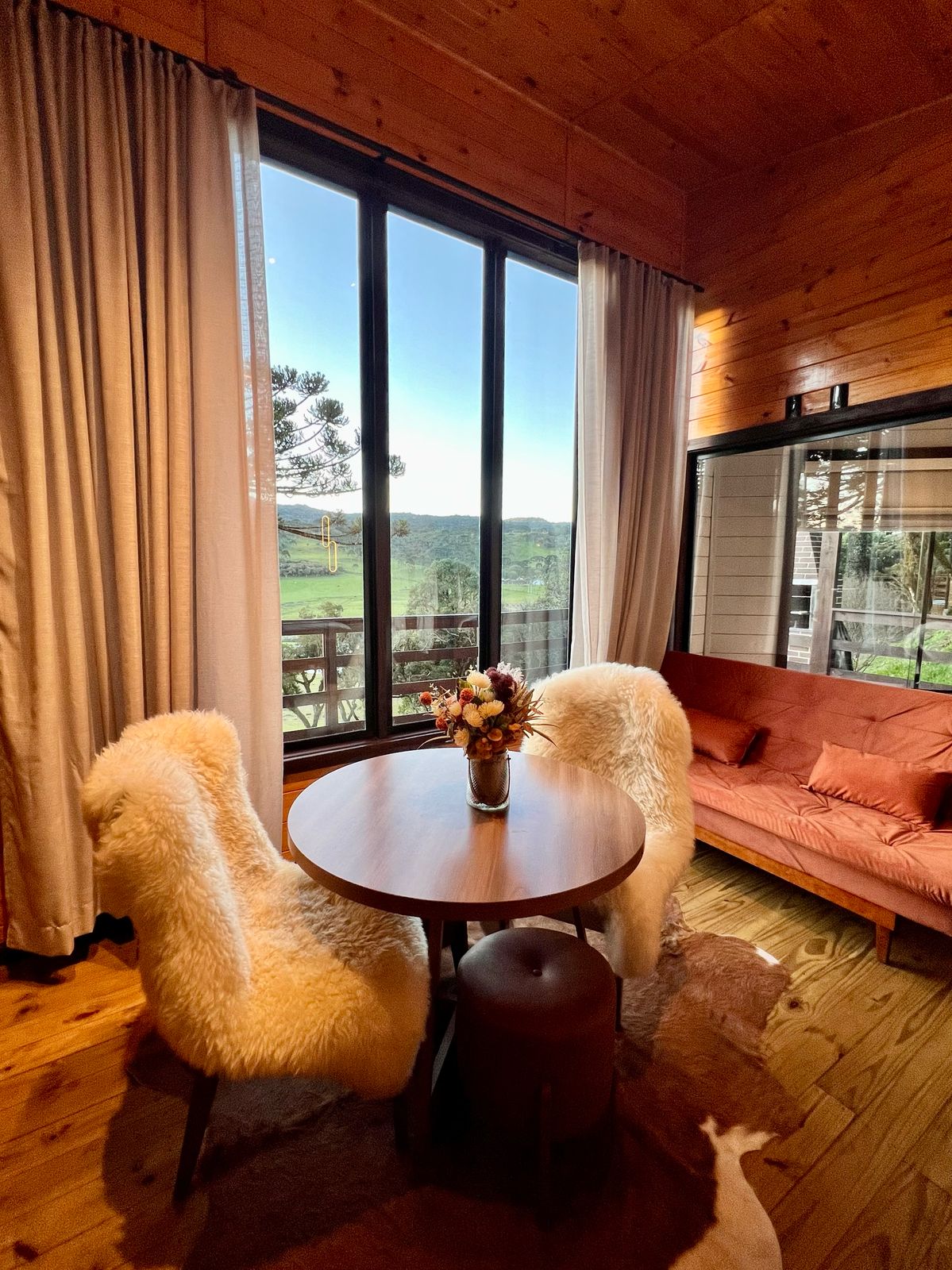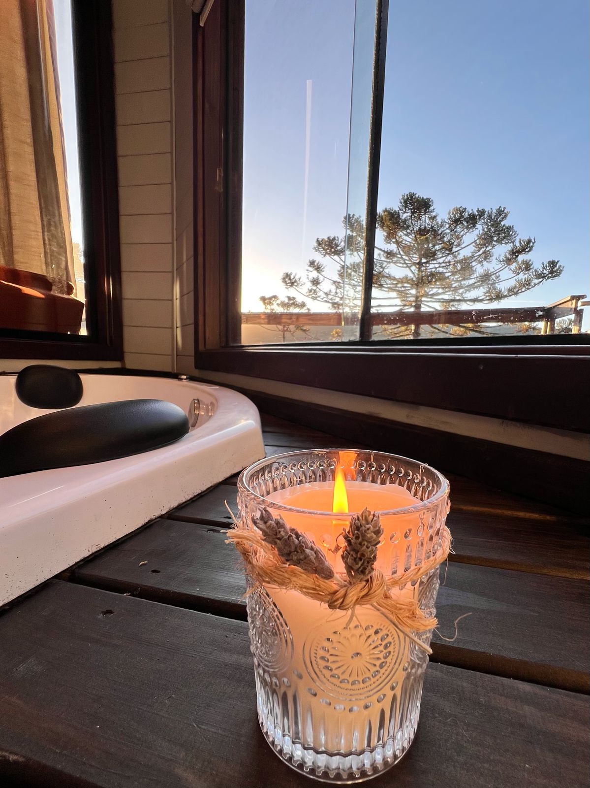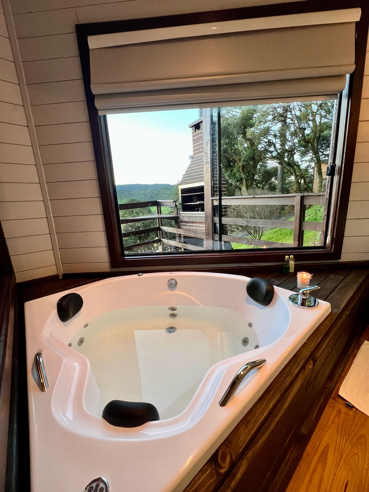 - Comodidades (umidificador de ar, cama queen size, roupas de cama, ar condicionado quente e frio, banheira de hidromassagem, cozinha completa, talheres e louças, lareira ecológica interna, secador de cabelo, secador de toalhas, Toalhas, cobertor extra, roupão)